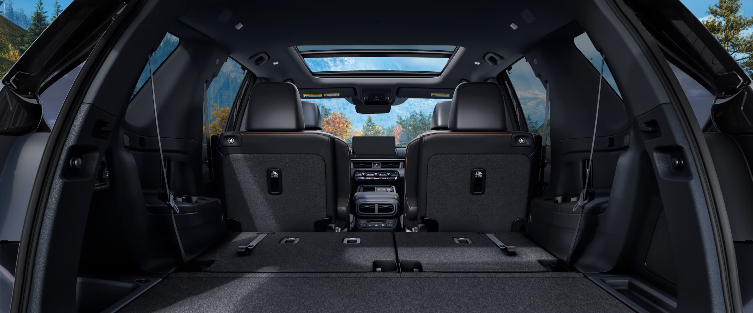With a reimagined grey front grille, Shark Grey 18″ aluminum-alloy wheels, and black side mirrors and door handles, the TrailSport’s rugged good looks are sure to turn heads. Inside, orange contrast stitching pops against the soft leatherette. The one-touch power panoramic moonroof with power sunshade tops it all off, bringing the outdoors in.
